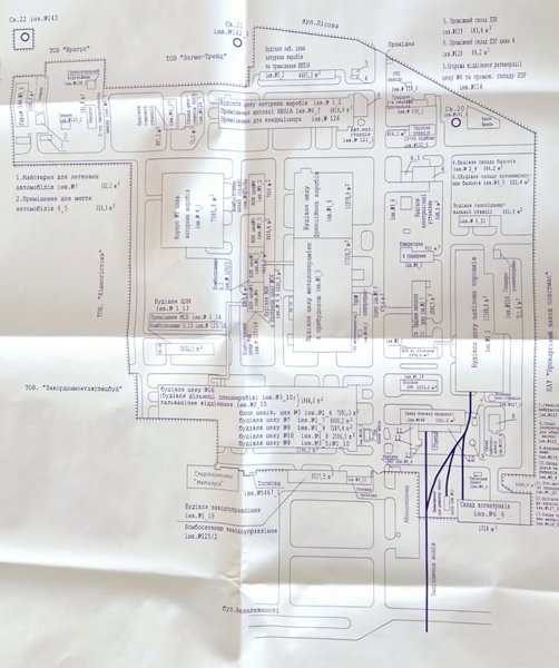 Об'єкт розташований у промисловій зоні Броварів – міста-супутника Києва, що забезпечує зручну логістику та доступ до ринків збуту. Населення Броварів значно зросло за рахунок внутрішньо переміщених осіб (понад 200 000 мешканців), що створює сприятливі умови для залучення трудових ресурсів. Підприємство має розвинену інфраструктуру: залізнична гілка, підстанція потужністю 20 МВт, газопостачання, асфальтована дорога, три в'їзди на територію. Загальна площа приміщень – 140 000 м², земельна ділянка – 35 га. Територія логічно ділиться на чотири функціональні частини. Перша – 5-поверхова офісна будівля та 12 000 м² виробничих приміщень, що ідеально підходять для логістичного центру. Друга – виробництво металевого порошку, законсервоване у 2014 році, потребує модернізації. Третя частина – діючий виробничий сектор із можливістю залучення інвесторів. Четверта – приміщення, які не підходять для логістики, але ідеальні для виробничих процесів. На території працюють орендарі, що гарантує стабільний дохід та можливість продовження договорів або їх перегляду на розсуд нового власника. У 2022 році підприємство зазнало незначних пошкоджень, які можна оперативно усунути. Важливою перевагою є якісні під’їзні шляхи, зручний доступ до основних транспортних магістралей та близькість до Києва, що робить об’єкт стратегічно привабливим для розвитку виробництва, логістики та інших бізнес-напрямків.