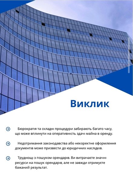 Працюю для тих, у кого є актив, але немає результату. У більшості випадків проблема не в самому об'єкті, а в тому, як ним управляють: відсутність структури, відповідальних, цифрових процесів, системної роботи з ринком. Натомість пропоную прозору, зрозумілу модель, де з першого дня все піддається обліку: аудит, стратегія, документообіг, просування, супровід і звітність. Це не посередництво , це робота на результат із чітким поділом відповідальності та прогнозованим доходом для замовника. Створюю систему, яка дає прибуток і може працювати без ручного втручання. Якщо у вас є актив, я покажу, де саме втрачається дохід і як це виправити.