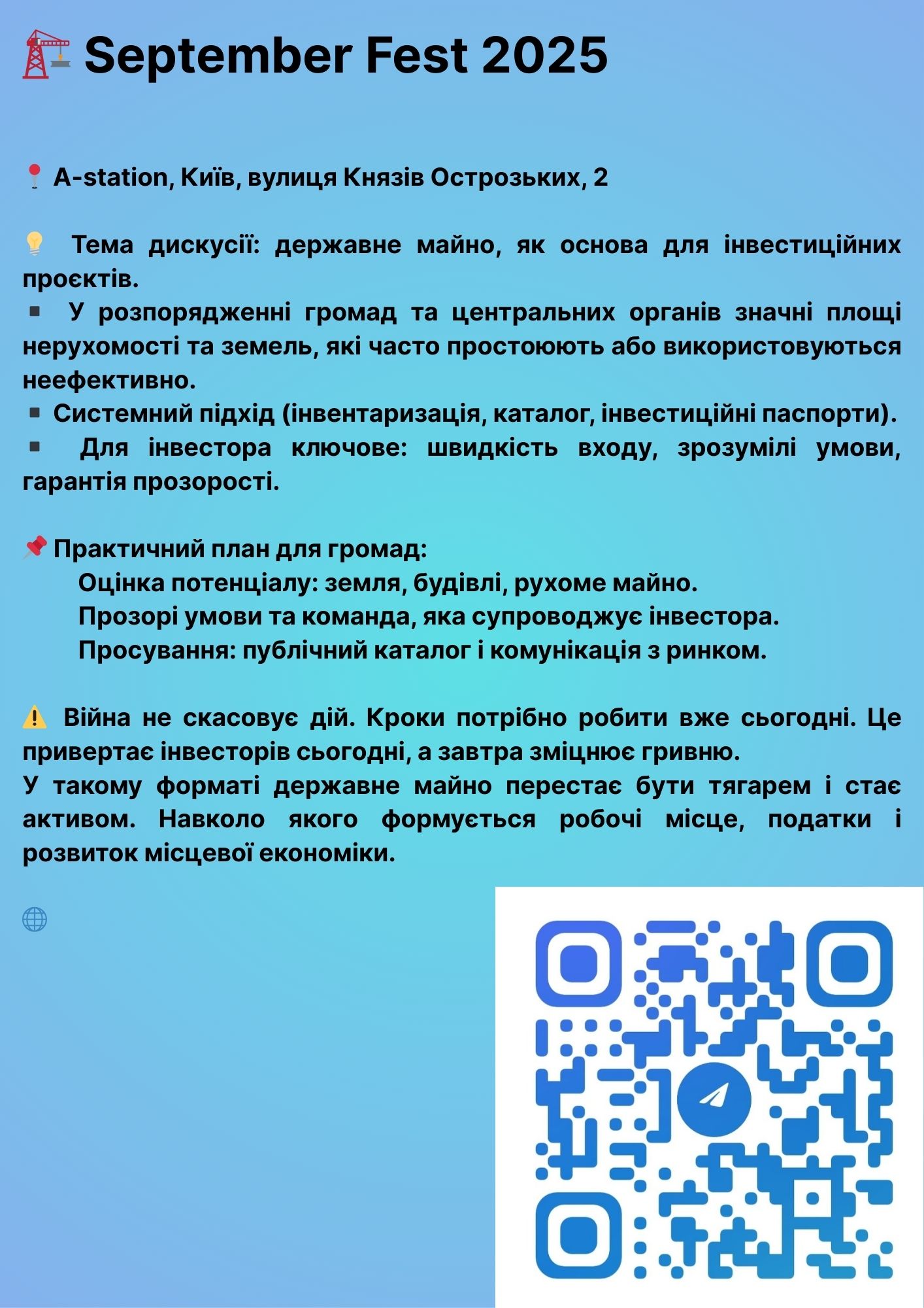 В умовах, коли Україна стоїть перед викликами відновлення та економічного зростання, державне та комунальне майно набуває нового, стратегічного значення. Це вже не просто застарілі будівлі, промислові майданчики чи необроблені землі, що потребують утримання, а потужний ресурс для залучення інвестицій і стимулювання розвитку громад. Нам усім очевидно, що коштів державного та місцевих бюджетів буде недостатньо для повноцінного відновлення. Тому ми маємо використовувати інші джерела: кошти міжнародних партнерів (грантодавців та фінансових організацій) та, що не менш важливо, приватний капітал, який в Україні є, але завдання полягає в тому, щоб створити такі умови, за яких інтереси приватного бізнесу збігатимуться з потребами громад (створення робочих місць, податків та розвитку інфраструктури). Співпраця з приватним сектором може мати різні форми, від оренди та концесій до публічно-приватного партнерства. Однак залучення інвестора, це не магія, а системний, послідовний процес, який починається з глибокого аналізу ресурсів громади: людських, матеріальних та нематеріальних. Інвестор обирає не просто місце, а партнера, якому він може довіряти. Наступним кроком є розробка чіткої стратегії, що визначає цілі громади, після чого необхідно сформулювати конкурентну та привабливу пропозицію. Для цього потрібно створити сприятливе середовище, що включає інвентаризацію та каталогізацію майна, створення інвестиційних паспортів для кожного об'єкта, а також формування команди, яка супроводжуватиме інвестора як «єдине вікно». Навіть найкраща пропозиція залишиться непоміченою, якщо про неї ніхто не знає, тому активна комунікація з ринком та участь у форумах є ключовими інструментами для залучення капіталу. Якісна підготовка проєктів є критично важливою, і це стосується як приватних, так і публічних ініціатив. Метою проєктної підготовки є не просто написати записку з ідеєю, а глибоко обґрунтувати її доцільність. Сучасні методології, як-от Project Factbook, рекомендують починати не з питання «Що ми хочемо побудувати?», а з питання «Яку потребу ми прагнемо вирішити?». Можливо, будівництво нової лікарні не є найкращим рішенням для малої громади, і більш ефективним буде розвиток телемедицини або співпраця з сусідами. Аналіз проєкту має бути всебічним: технічним, економічним, соціальним та екологічним. Війна не скасовує дій. Навпаки, кожен крок, зроблений сьогодні, закладає фундамент для майбутнього. Інвестиційні проєкти, що базуються на державному майні, є не лише способом його ефективного використання, а й фундаментом для створення робочих місць, збільшення податкових надходжень і, як наслідок, зміцнення української економіки. Це боротьба за обмежені ресурси, і переможе той, хто буде діяти системно, прозоро та ефективно.